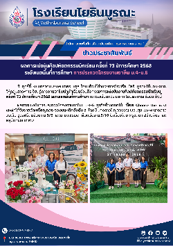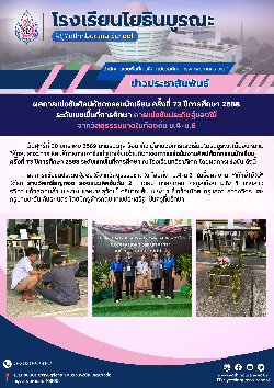 การแข่งขันการจัดสวนแก้ว ม.4-6 ได้รับรางวัลเหรียญทอง อันดับ 10 โดยมี นางสาวอรุชา รัตนบรรณกิจ ม.5...