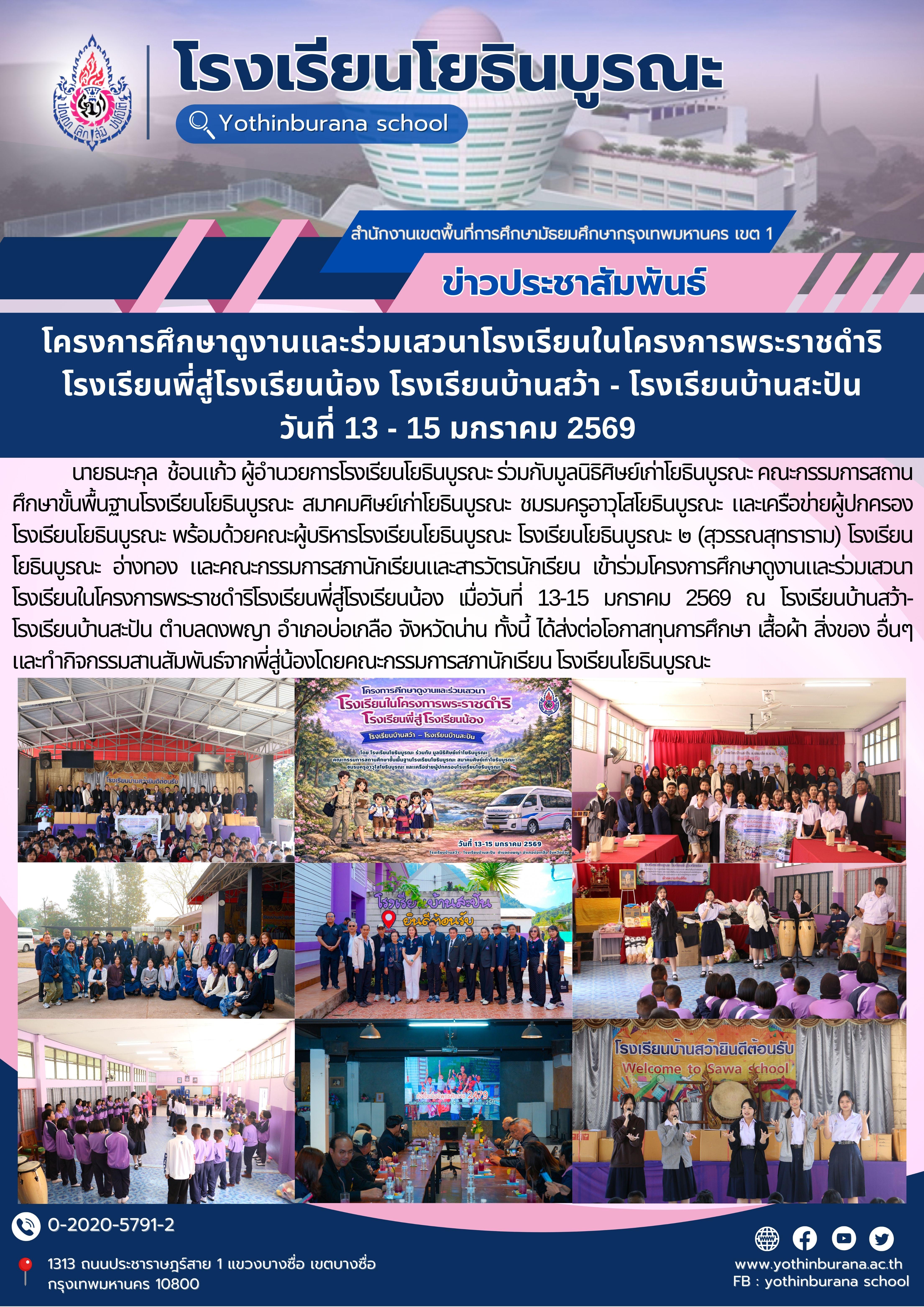 โครงการศึกษาดูงานและร่วมเสวนาโรงเรียนในโครงการพระราชดำริ โรงเรียนพี่สู่โรงเรียนน้อง