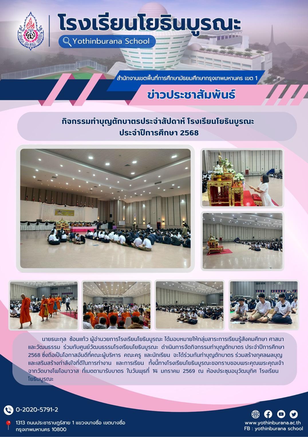 กิจกรรมทำบุญตักบาตรประจำสัปดาห์ โรงเรียนโยธินบูรณะ ประจำปีการศึกษา 2568